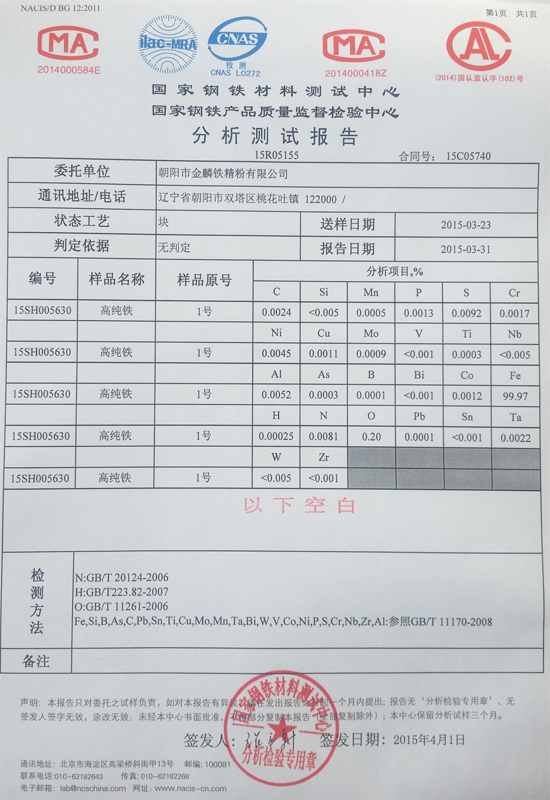 純鐵--檢測報告